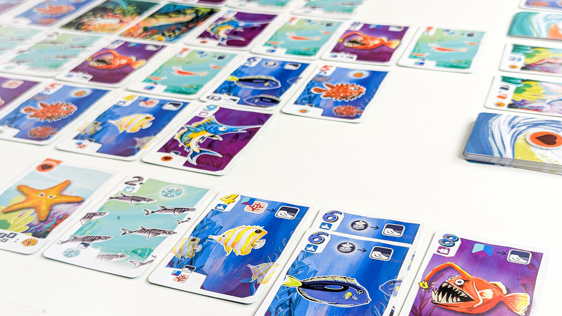 Set up your ocean, draw your starting cards, and take turns building habitats and stocking your reserve. Play fish from your hand and your reserve in clever sequences to trigger powerful chains — and score big before your opponents can react.